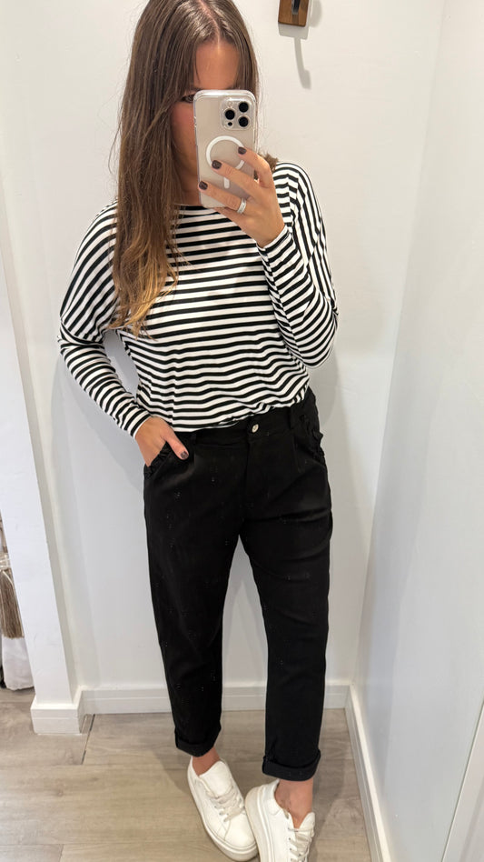 BLACK CHINO MAGIC PANT WITH FRILL POCKET