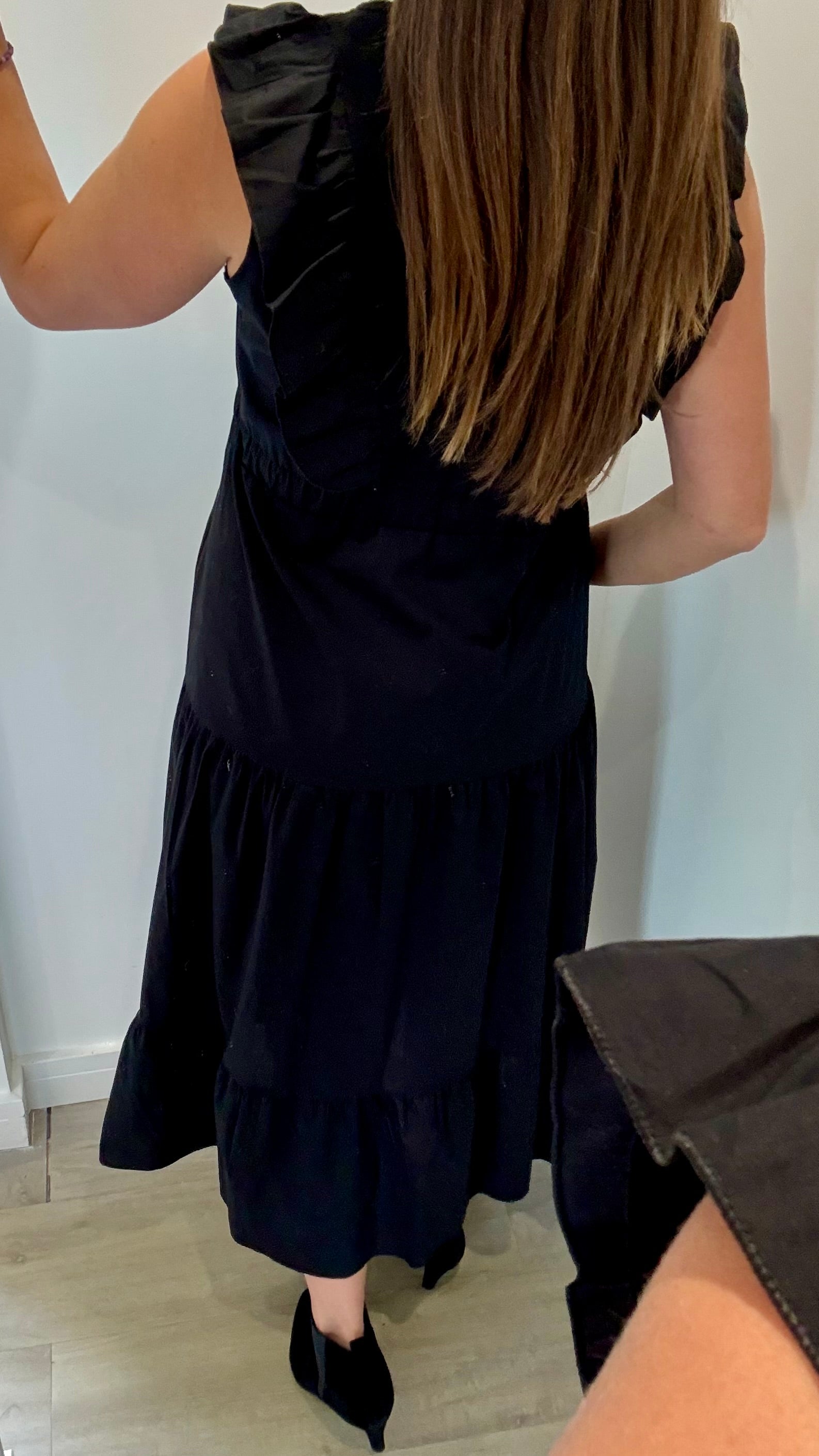 BLACK JET TIERED COTTON MAXI DRESS