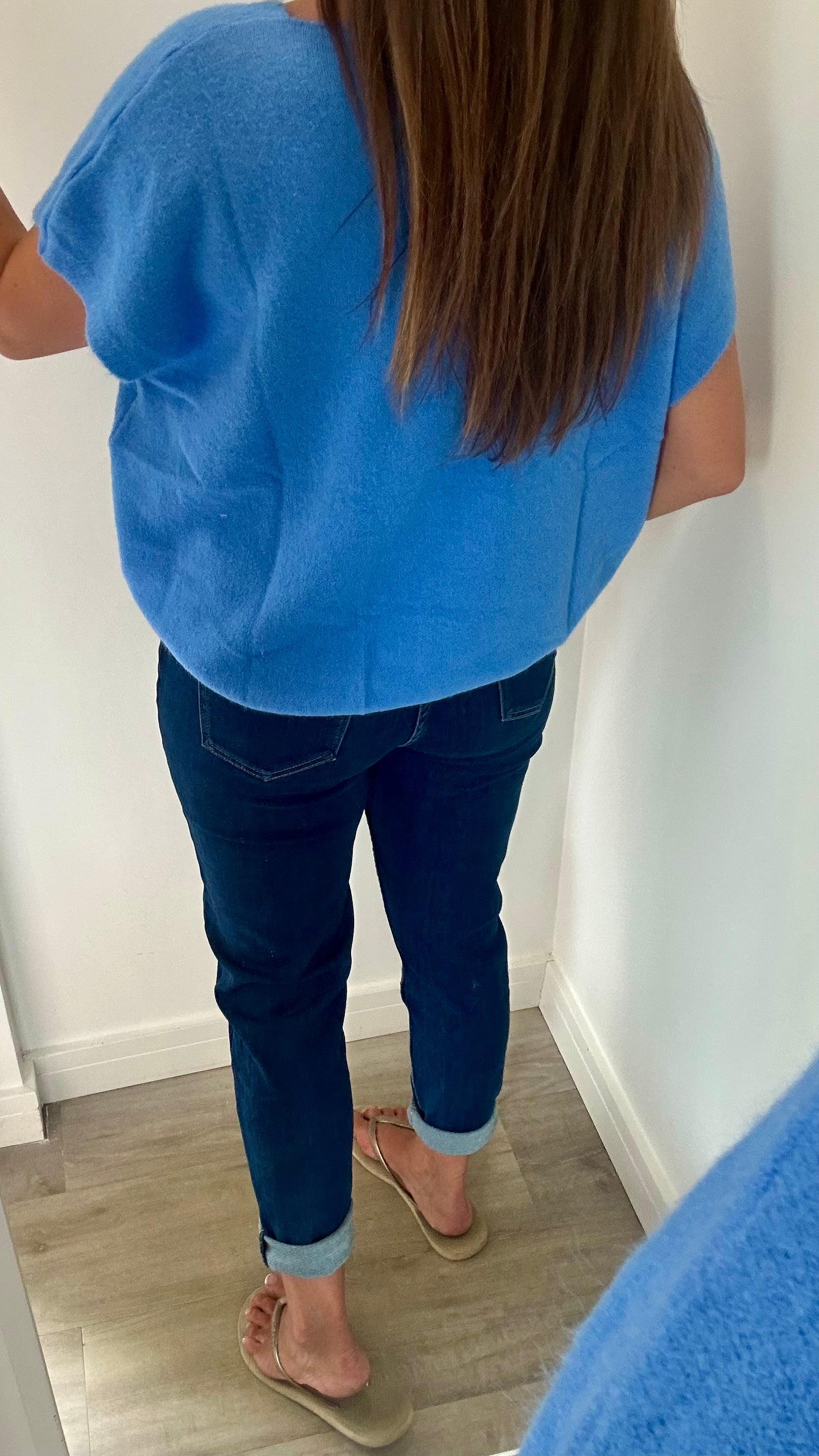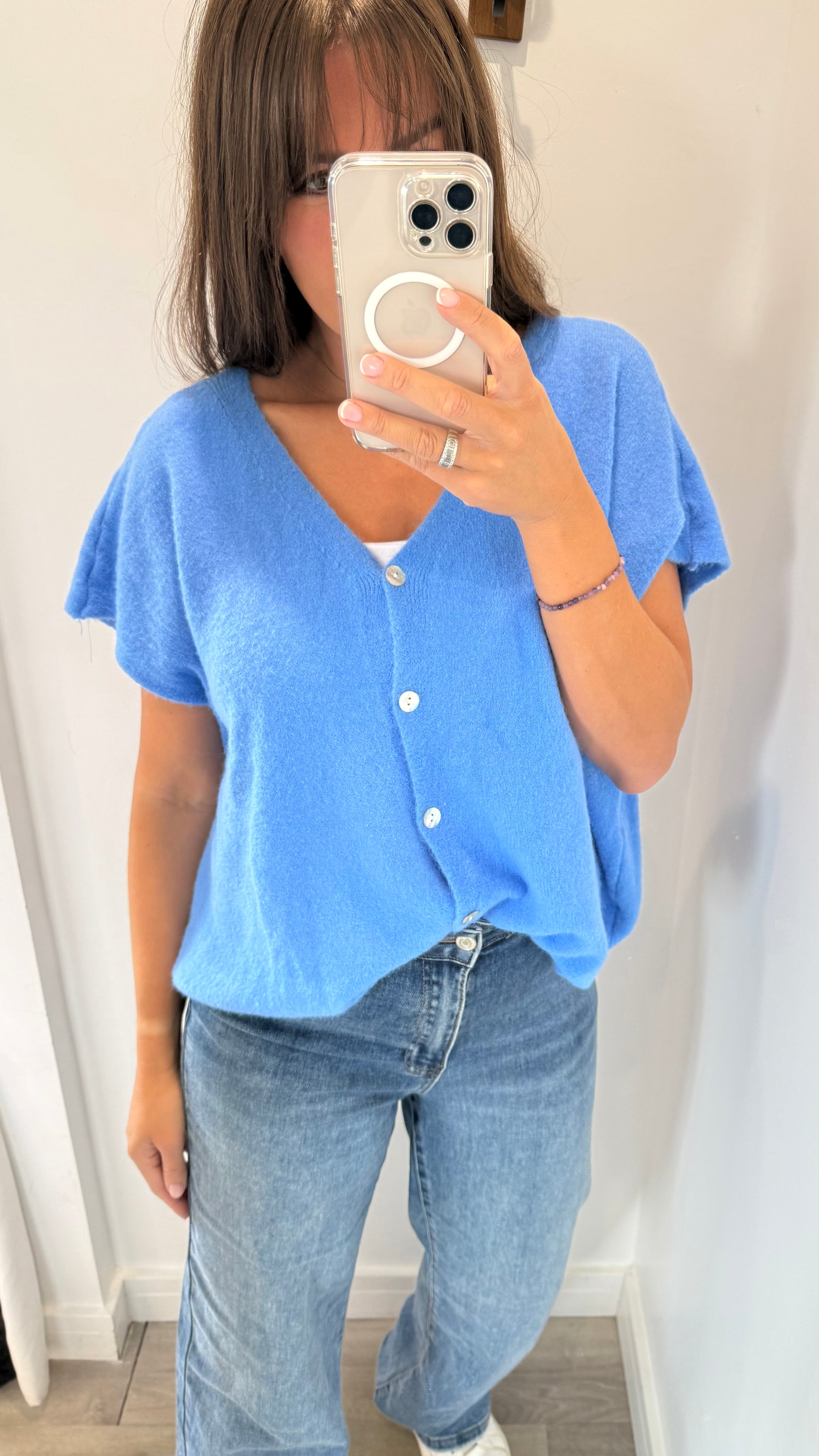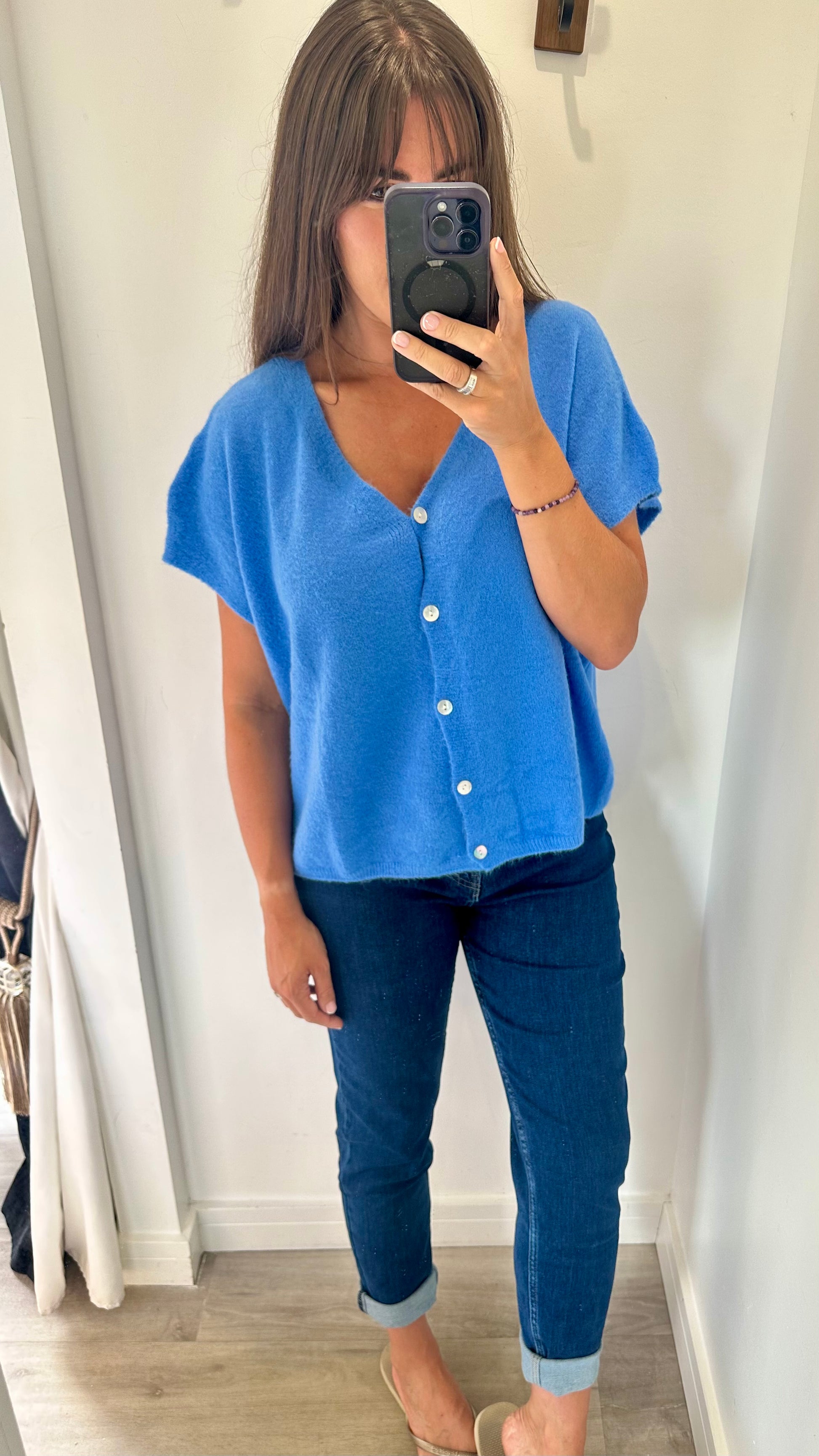 BLUE DEEP V BOXY SLEEVELESS CARDIGAN