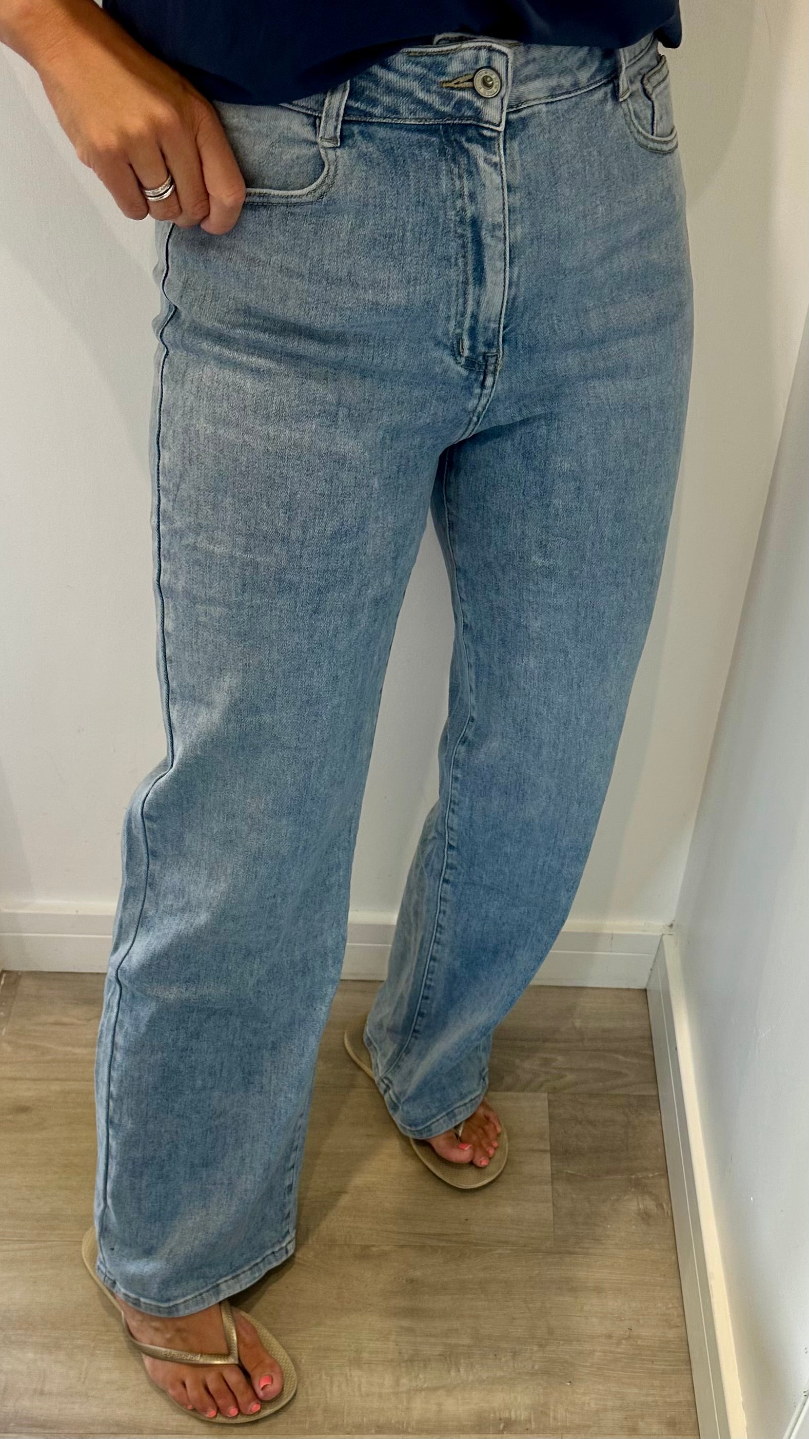 Meet your new favourite jeans. With just the right amount of stretch and a flattering straight-wide leg silhouette, these mid-blue denim jeans are an everyday essential. Pockets front and back, comfortable waistband, and a cut that suits all shapes – these are jeans that move with you, not against you.