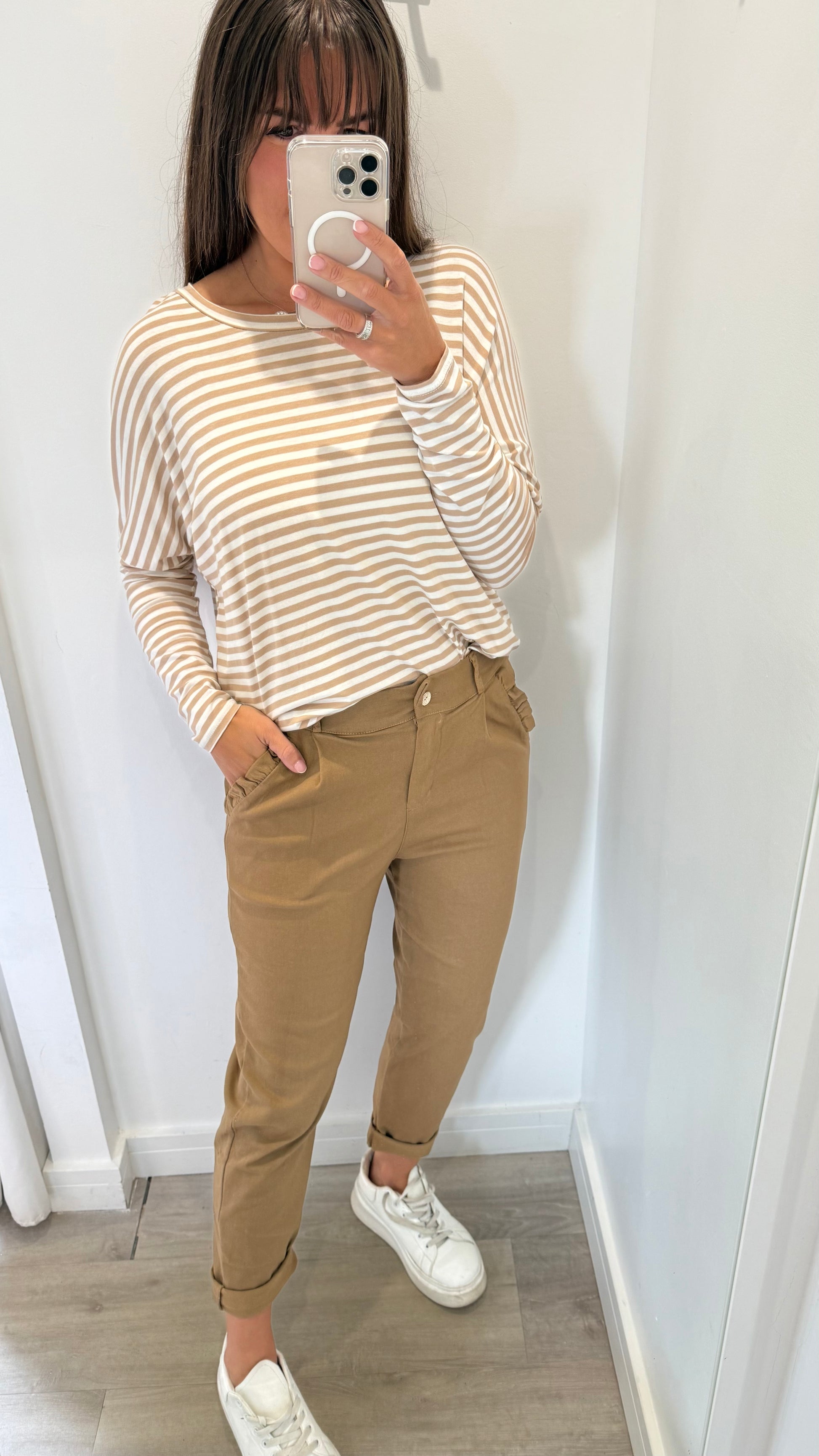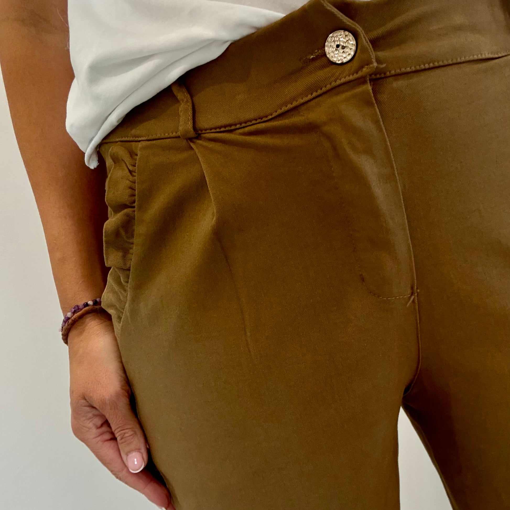 CAMEL CHINO MAGIC PANT WITH FRILL POCKET