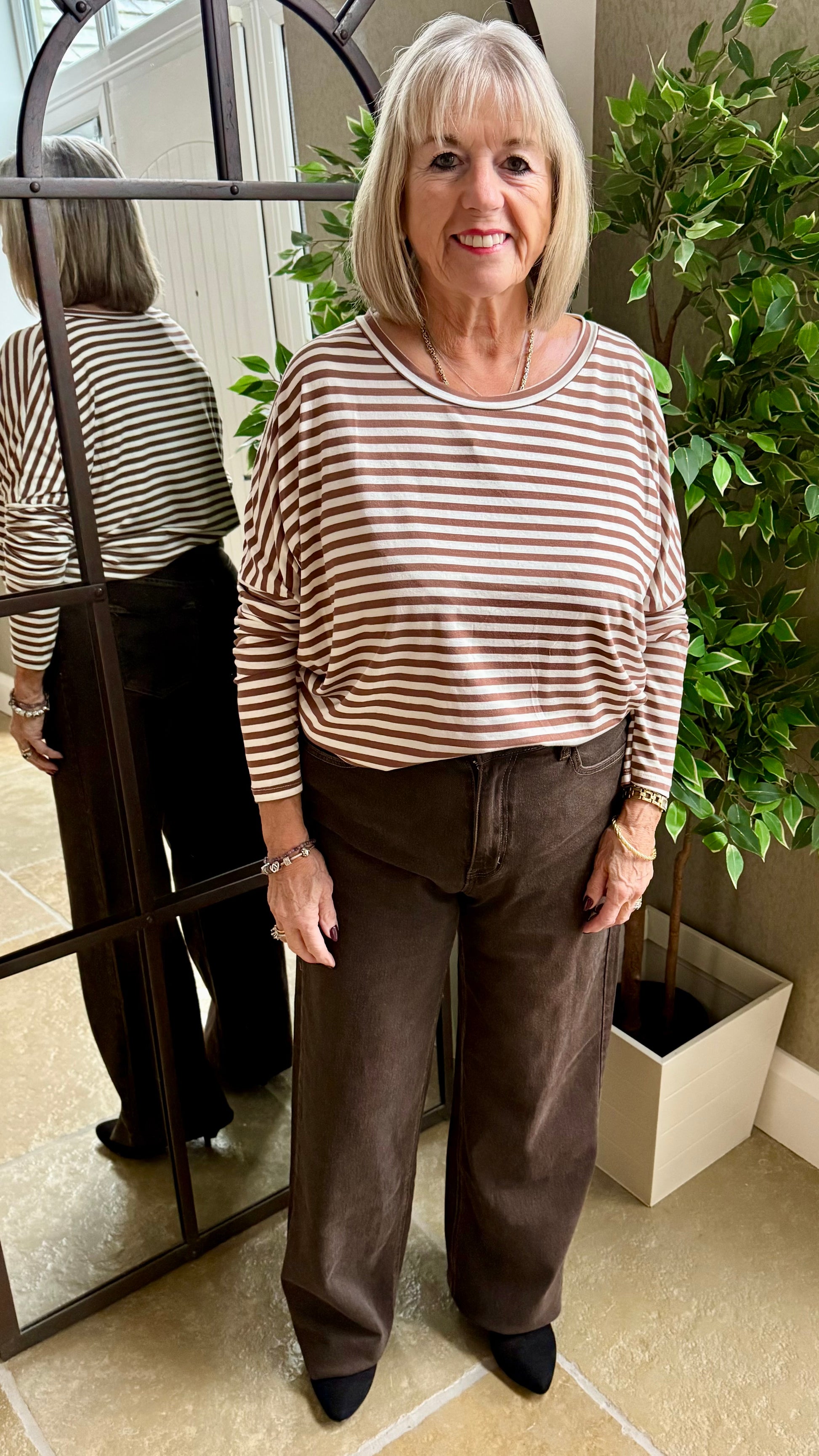 If you love the relaxed feel of a boyfriend jean but want something more flattering — meet your new favourite. These chocolate dad jeans tick all the boxes: comfy stretch, structured shape and that easy “effortless but pulled-together” vibe.