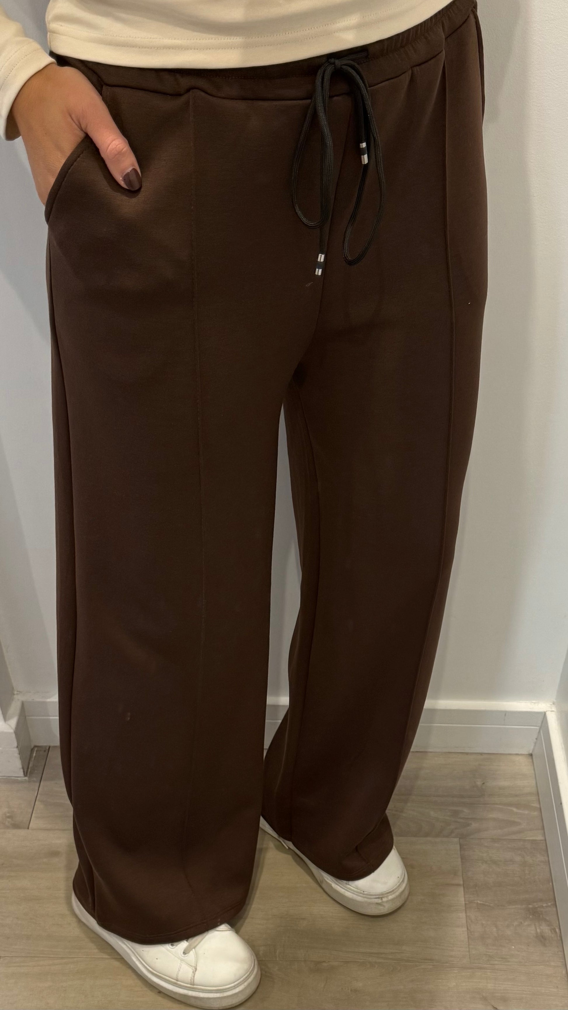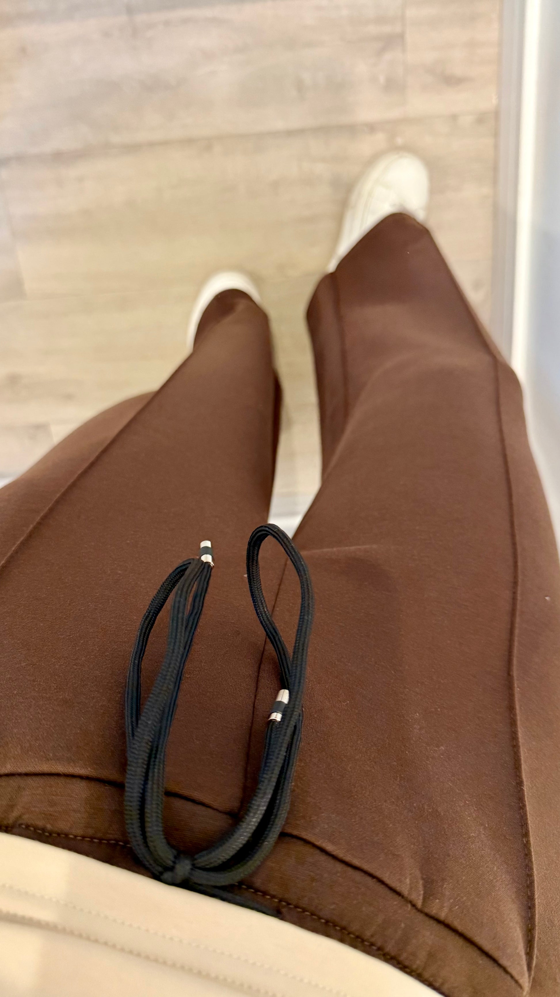CHOCOLATE DRAWSTRING STRAIGHT LEG TROUSERS