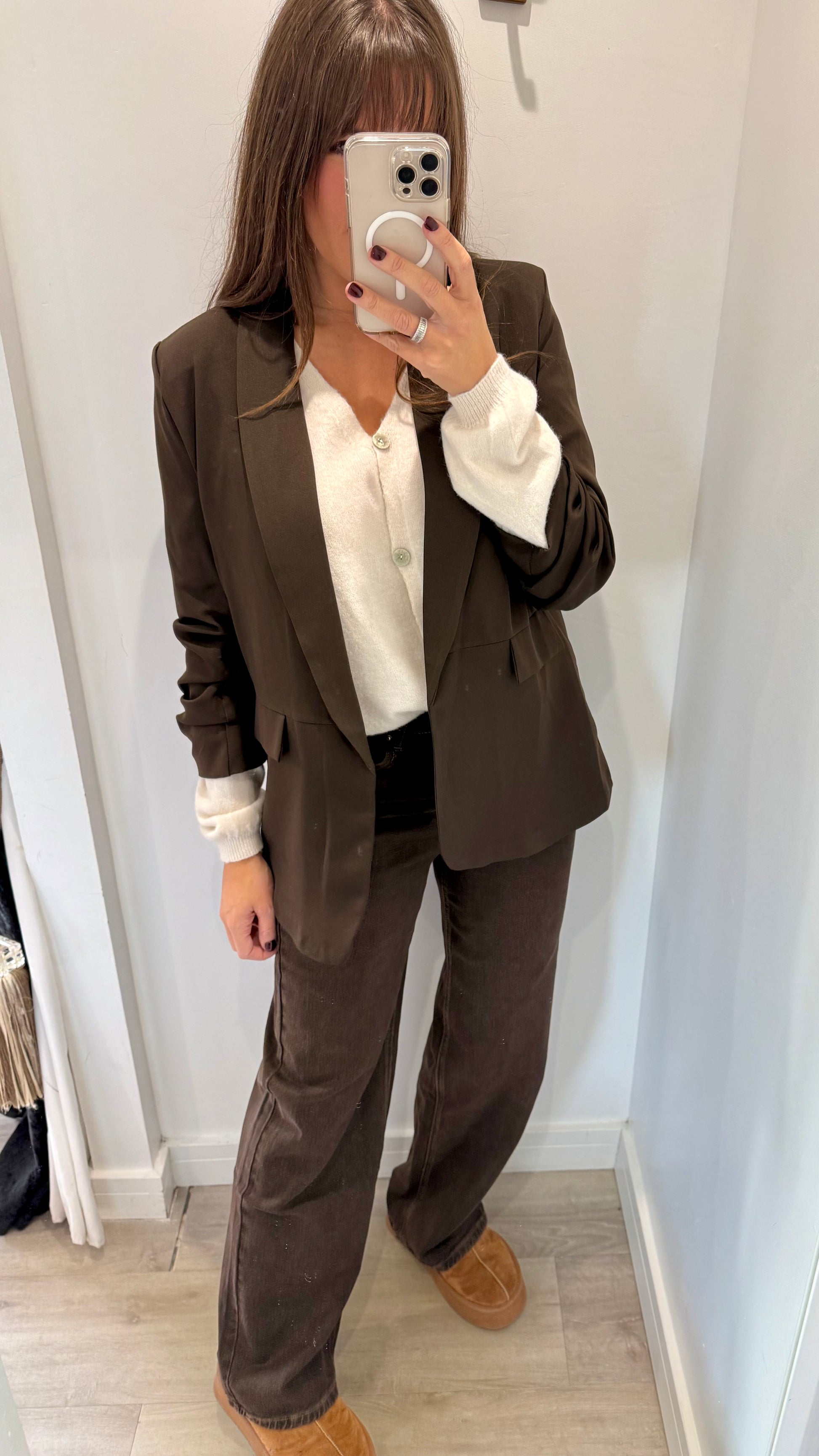 CHOCOLATE RUCHED SLEEVE BLAZER