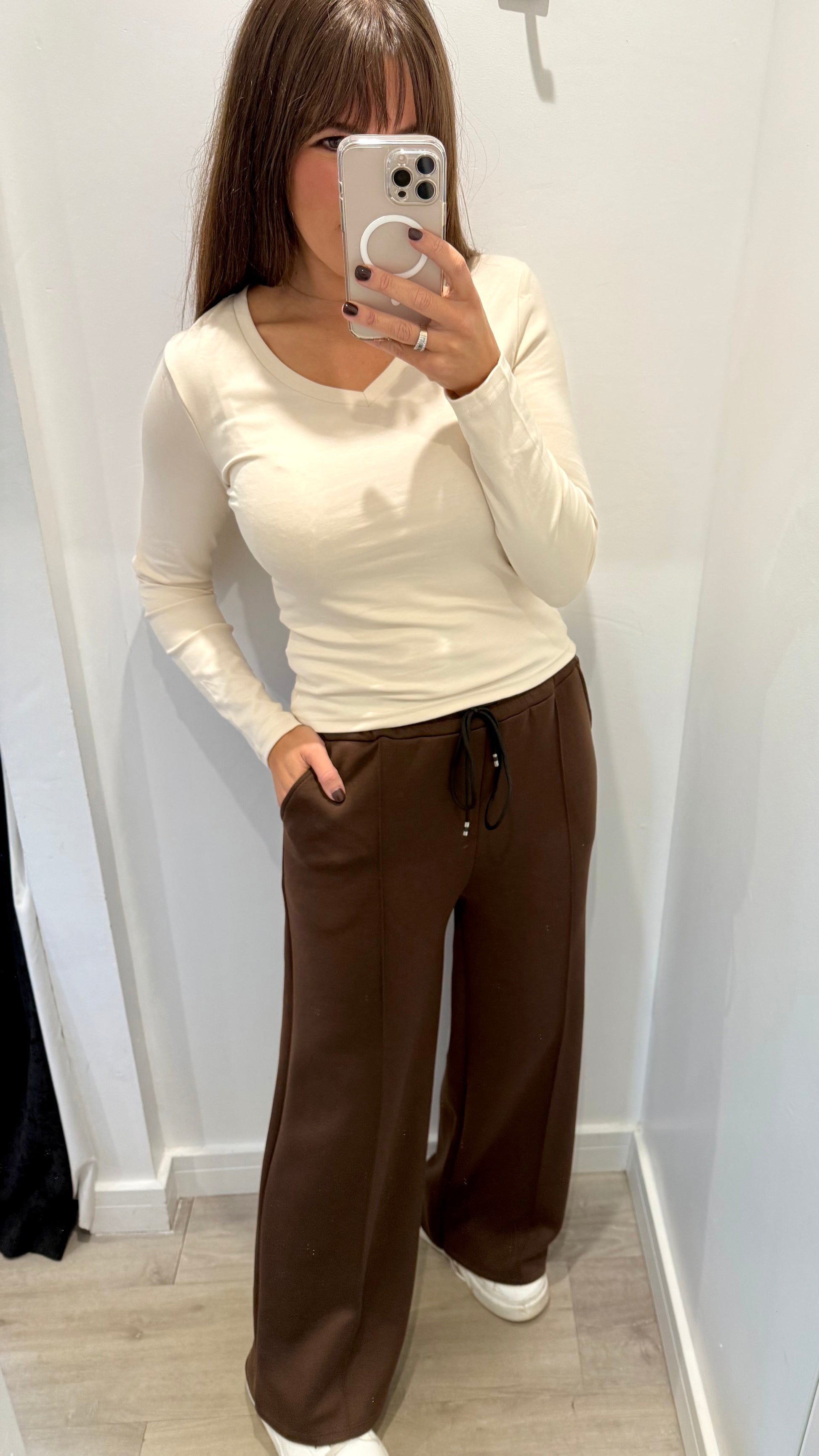 Your new layering hero. Soft, stretchy, and cut to flatter, this cream V-neck top is simple but styled — the perfect “nice basic” that works alone or under your favourite knits and blazers. Easy, comfy, and effortlessly chic.