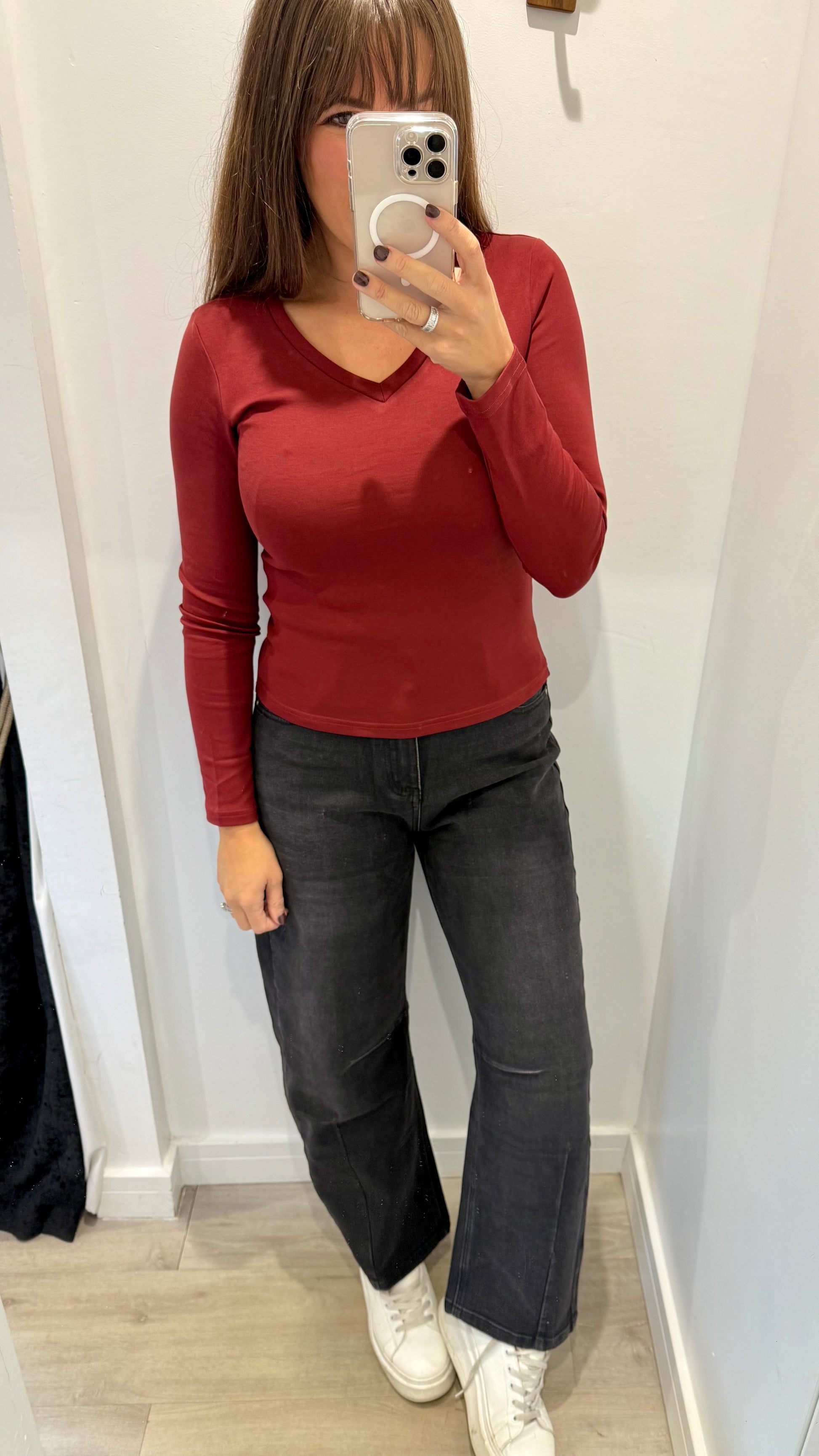 The pop of autumn colour your wardrobe’s been missing. This Merlot stretch V-neck top is perfect for wearing solo with denim or layering under knits and blazers when the chill sets in. Soft, stretchy, and shaped to flatter — you’ll reach for it on repeat.