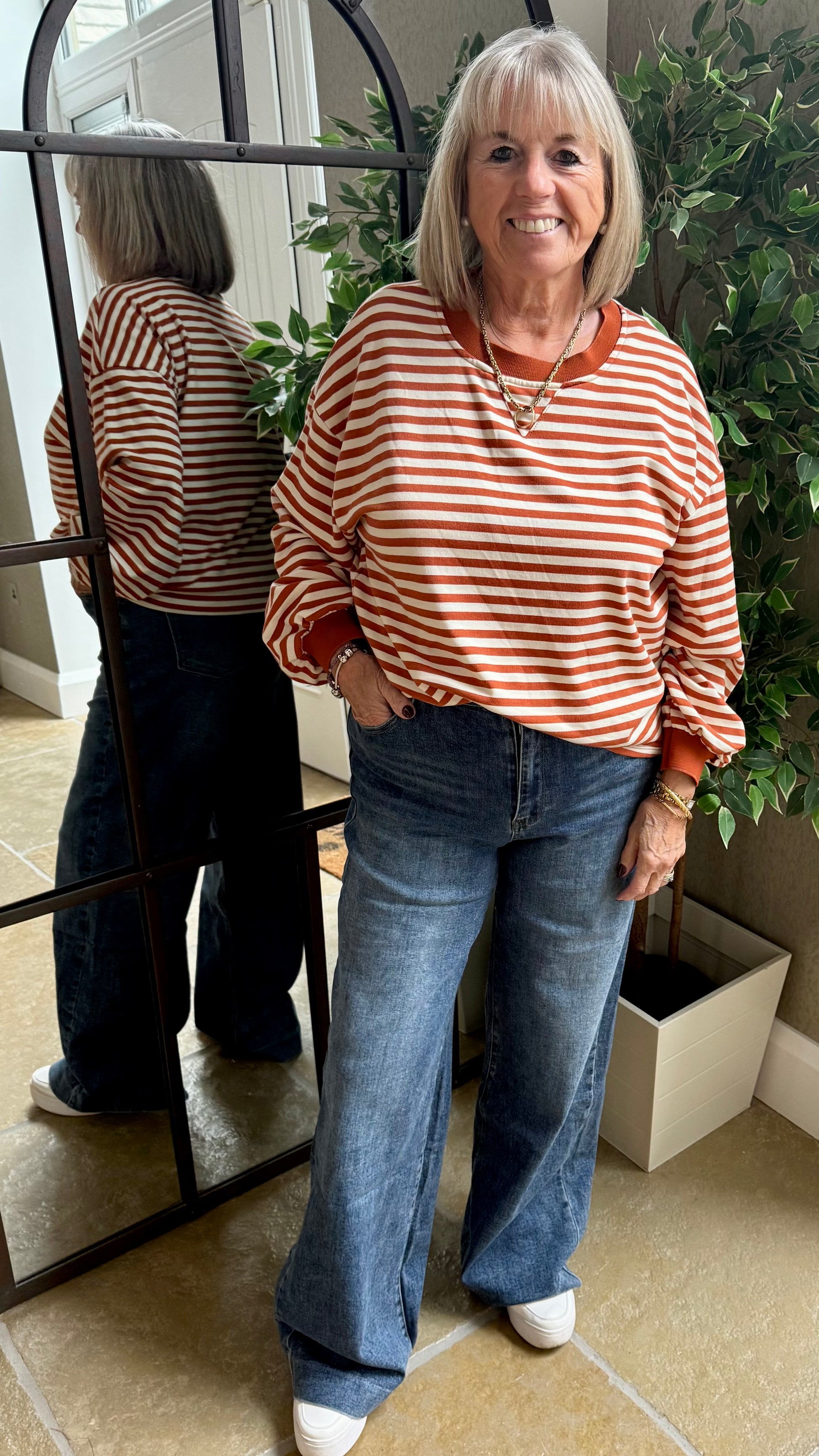 Style them with a soft knit such as the merlot balloon sleeve textured knit or a chocolate blazer for everyday chic — or a cap sleeve tee and chunky trainers for that effortless, “I just threw this on” look.