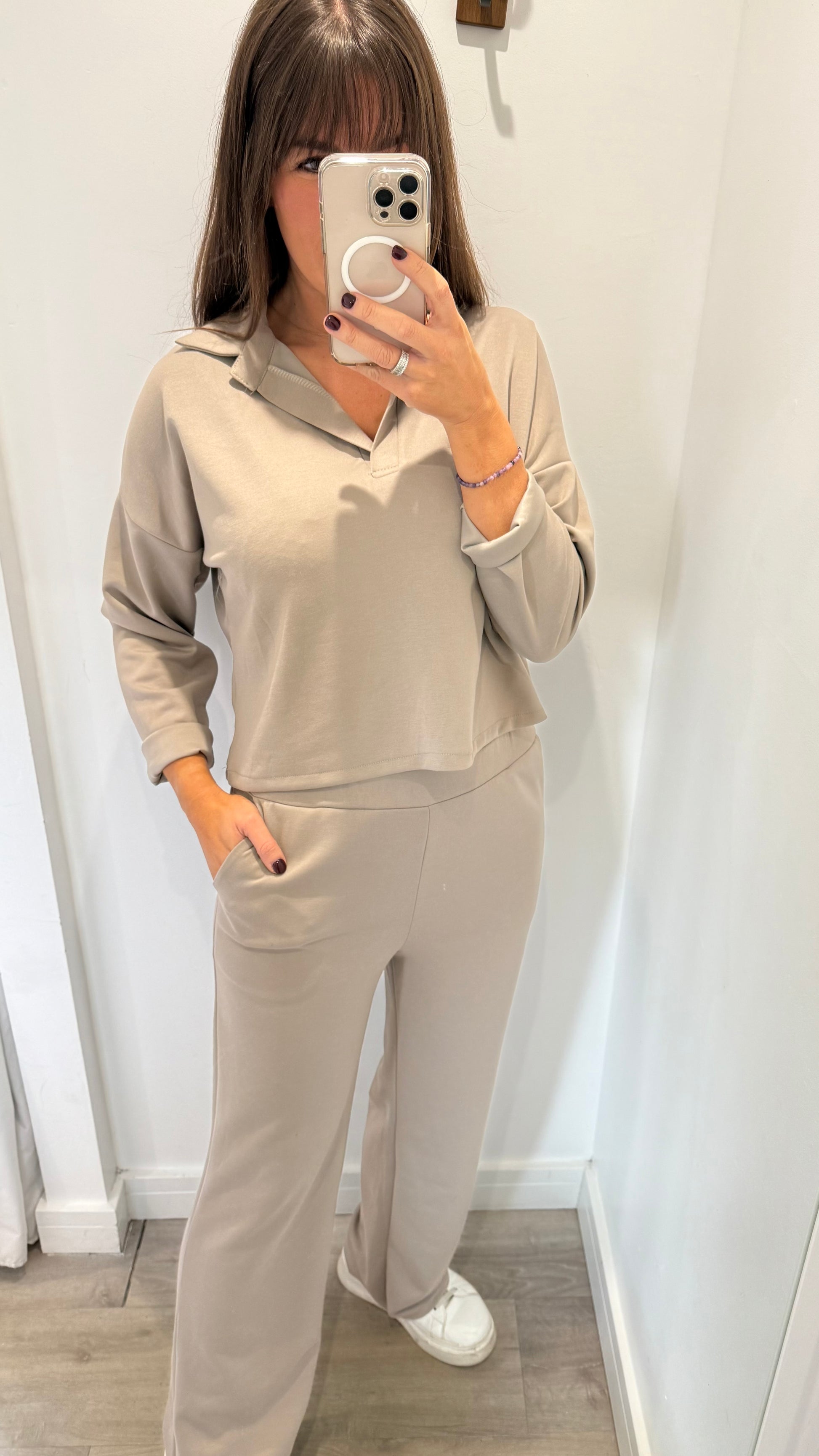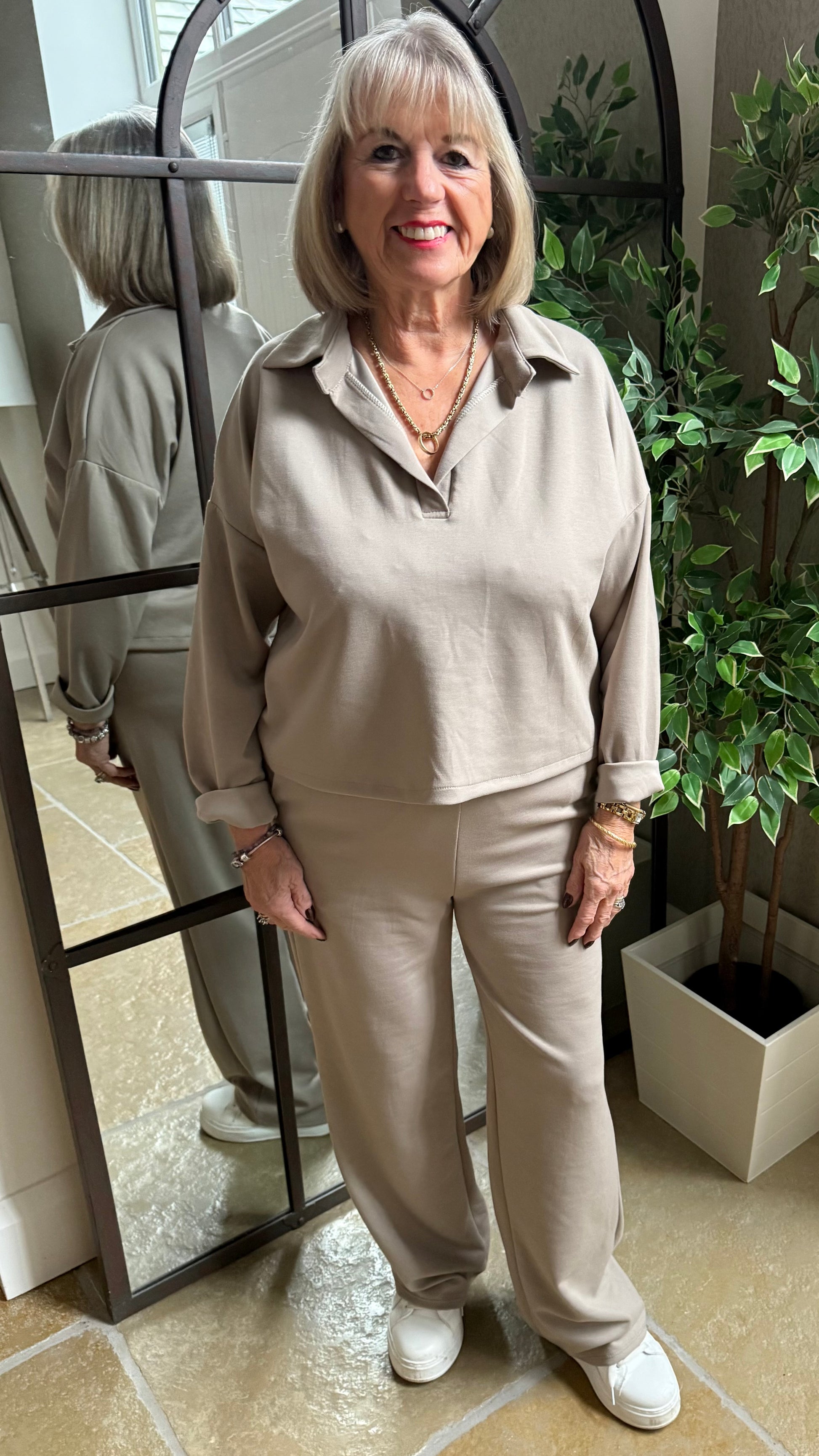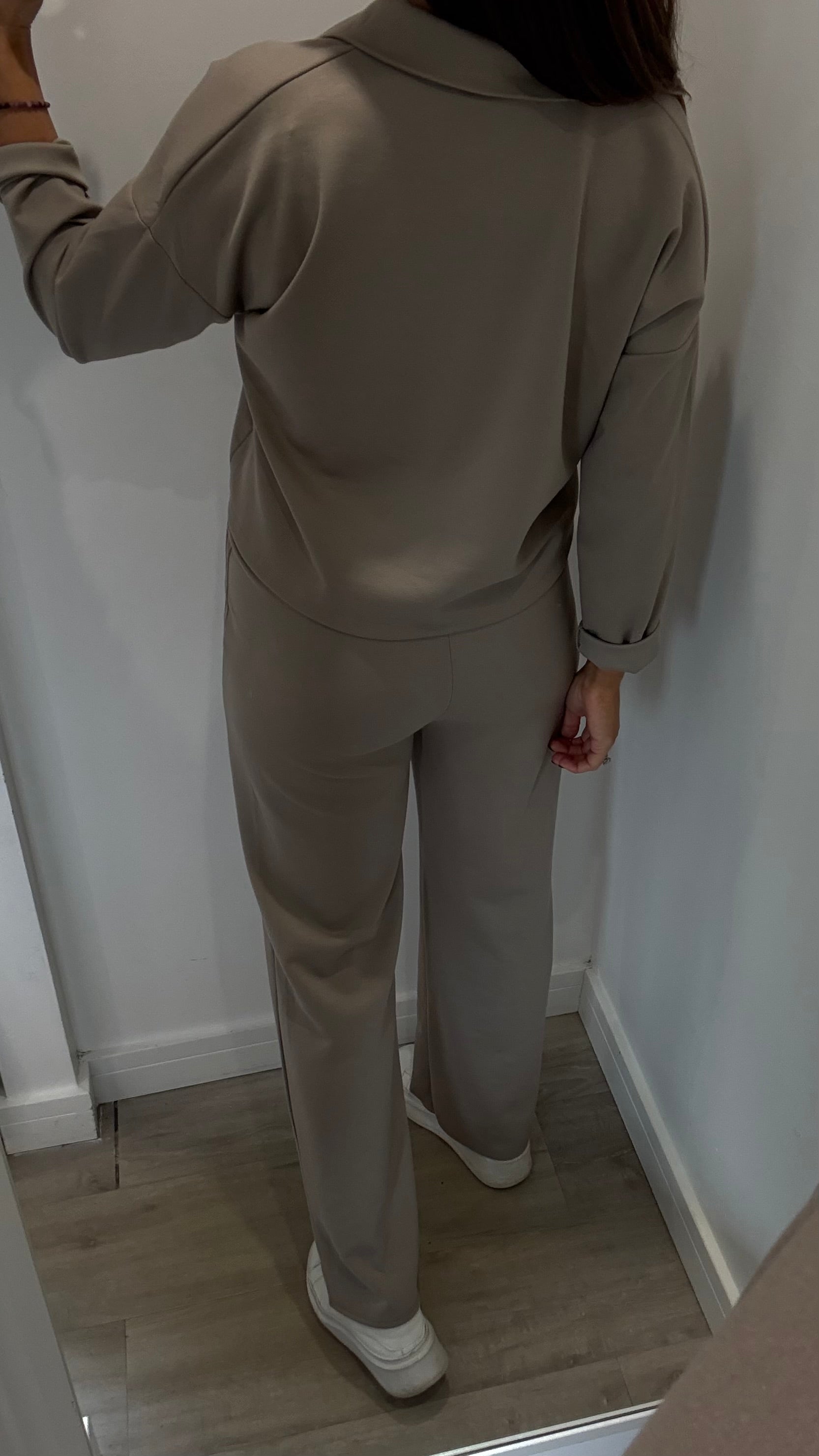 The same bestselling fit as the black set — relaxed, flattering, and effortlessly put-together — but now in a warm mocha tone that flatters every skin tone.